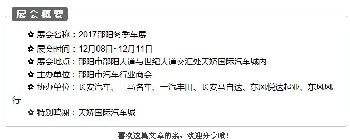 更多精彩,盡在12月08 -11日邵陽(yáng)冬季車(chē)展