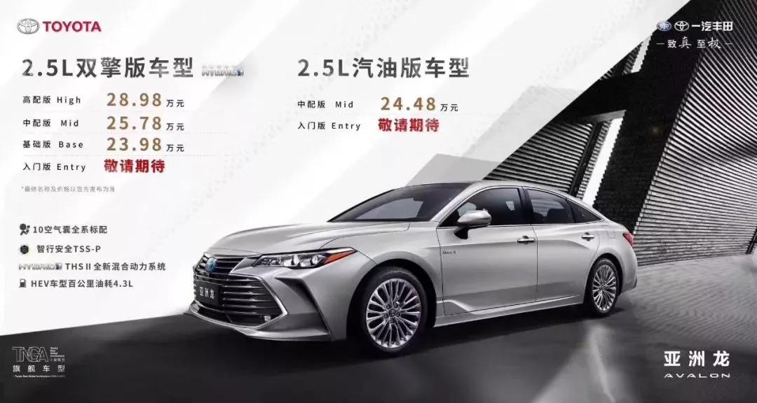 AVALON亞洲龍 預售價(jià) 終于揭曉!